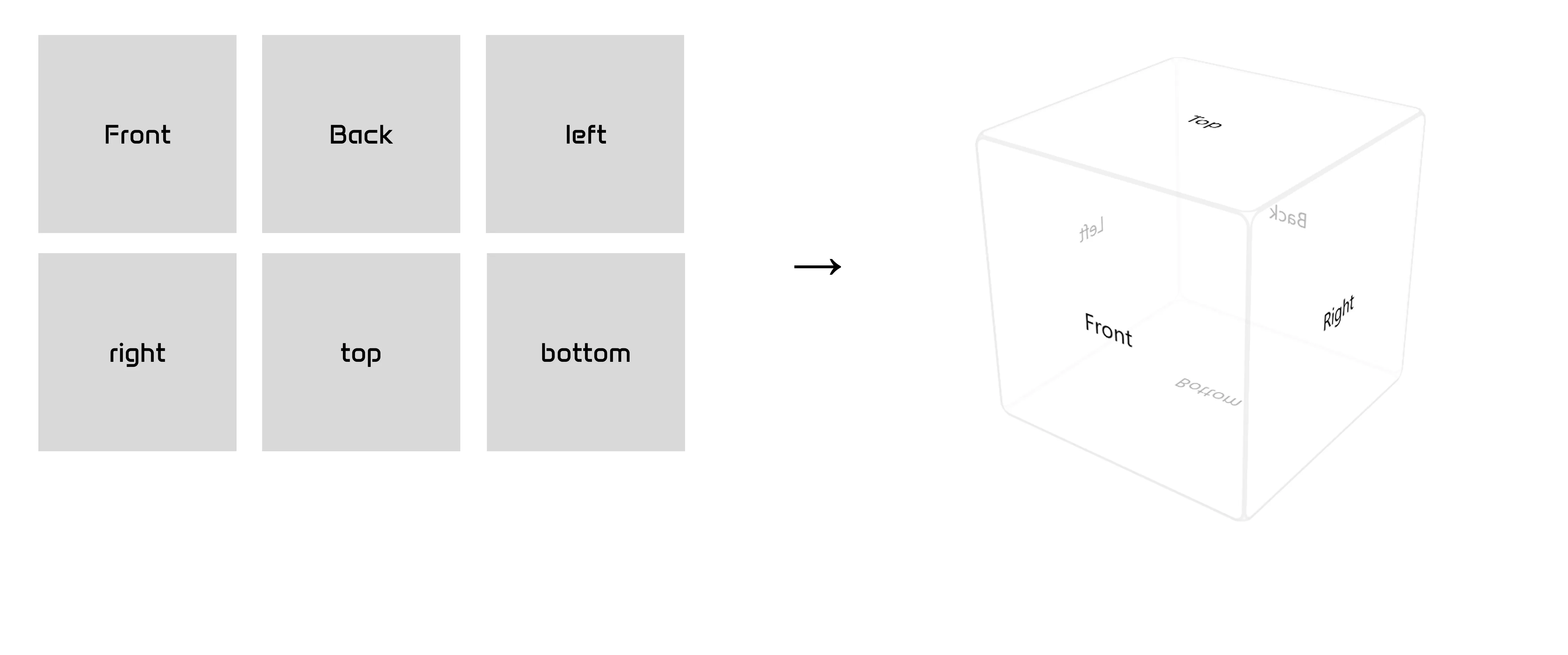 absolute로 각div를 겹치게 합니다.- 각 6개 면에 적당한 그라데이션 색상을 주고,