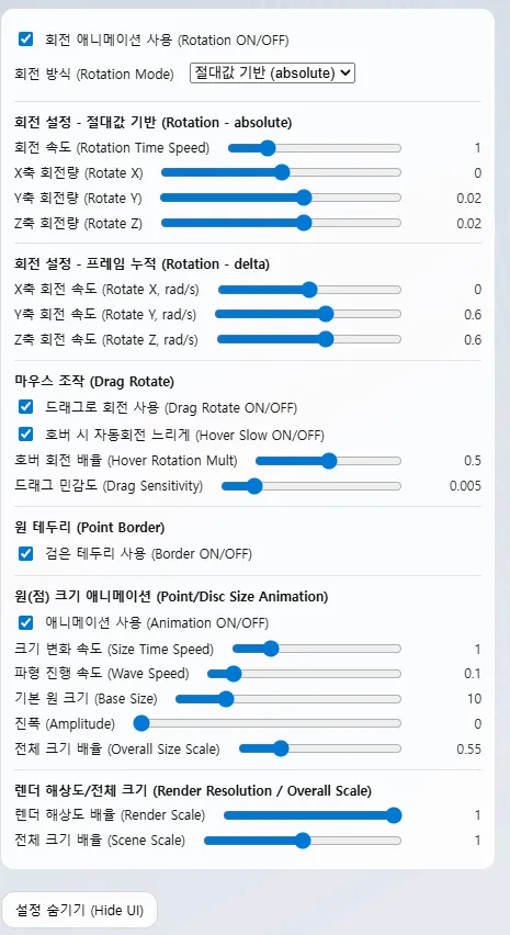 이 프로젝트에 사용되지는 않았지만, 쓰일지도 몰라서 우주 행성같은 느낌도 구현해보았는데요,