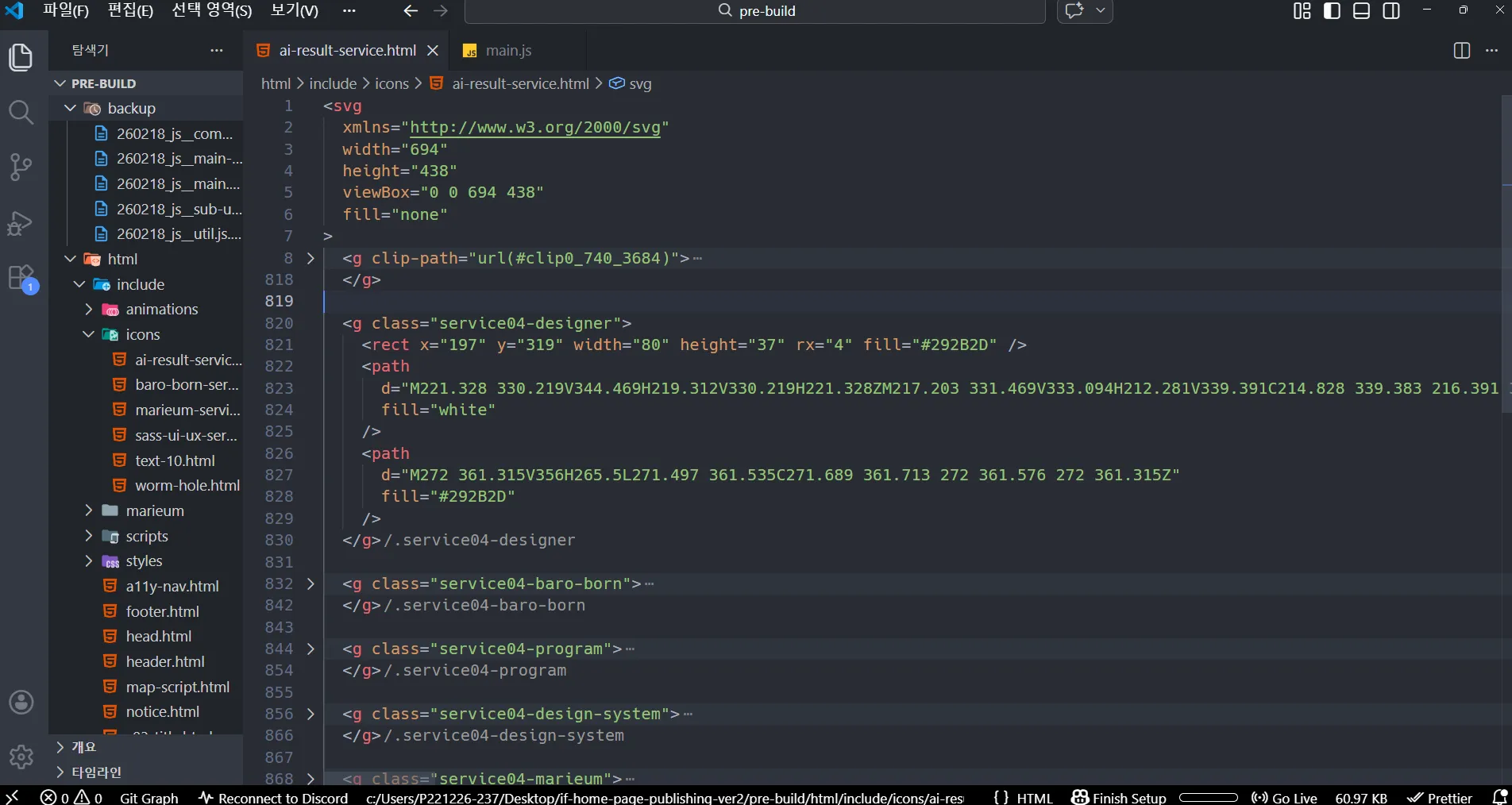 이미지를 좀 더 동적으로 보여주면 어떨까 싶어서, SVG 코드를 직접 HTML안에 넣어서 쓰는 인라인 SVG 방식을 선택했습니다.