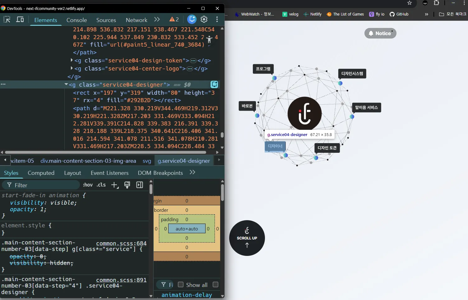 하지만, 제가 원했던 건 위처럼 스크롤 위치에 따라 애니메이션이 발동되는 스크롤 기반 애니메이션 이 필요했습니다.