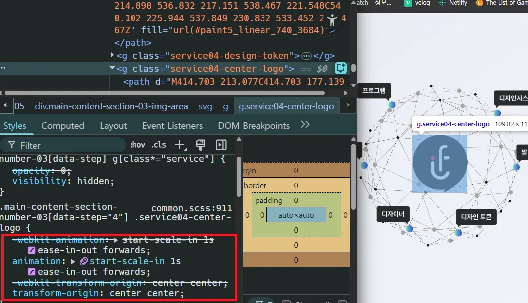 위 이미지에서 저는 빨간박스 친 바깥쪽 태그랑, 가운데 로고만 애니메이션이 동작하면 되기 때문에,